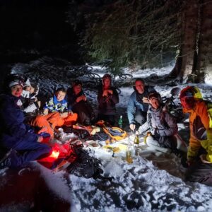 - Observation de la chaîne des Aravis aux jumelles, éclairée par la pleine lune.
