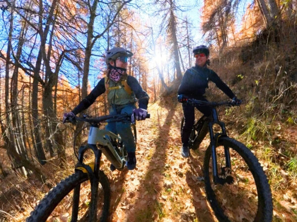 On se met dans la peau des cyclistes du Tour de France et on emprunte la route. Mais avec 8kgs sur le dos et des pneus larges, ça ne donne pas le même résultat. Dès qu’un joli chemin se profile, on l’emprunte. La montée est coriace avec les sacs, et le soleil chauffe comme en plein mois d’août. Mais le temps est beau, on en oublierait presque l’effort… ou aurais-je activé le mode Turbo par erreur…? 😉
